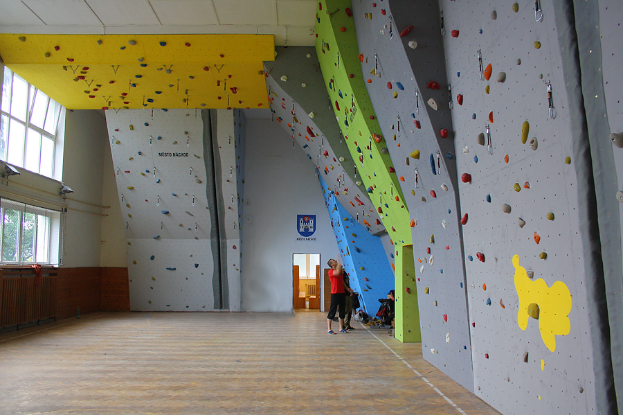 Díky vstřícnému postoji vedení Města Náchod a ZŠ T.G.Masaryka a v neposlední řadě nadšení náchodských i přespolních lezců je od 17. září 2014 otevřena v Náchodě nová umělá lezecká stěna. Stavbu realizovala firma Pilka Kameny podle návrhu, na kterém jsme se aktivně podíleli. Snažili jsme se o účelné rozložení profilů a rozumný poměr mezi kolmějšími a převislejšími částmi stěny. Umělá stěna stojí v tělocvičně na 1. stupni ZŠ T.G.Masaryka. Výška stěny s lanem je cca 7m, obvod 20m, lezecká plocha zhruba 200m2. Umělá stěna disponuje cca 20 lezeckými liniemi na profilech různé převislosti 0,5m-4,5 m + více než 6m stropu. Byly postaveny cesty pro každého - od nejlehčích, vhodných pro úplné začátečníky po velmi těžké. Na stěně je odhadem 70 cest ve stupních 3 - 9+ UIAA. Stěna disponuje dvěmi tvarovanými spárami. Součástí stěny je bouldrovka o lezecké ploše cca 50m2. Na umělé stěně je možnost zapůjčit si za poplatek 20 Kč/ks základní lezecké vybavení - sedák, lano a osmu. Tělocvična je vybavena novým WC a samostatným vchodem. Provozní doba: Po: 18 - 19:30 hod. (děti) St: 18 - 20 hod. (veřejnost) Pá: 18 - 20 hod. (veřejnost) Vstupné za jednu návštěvu (veřejnost): Základní: 70,- Kč Studenti: 50,- Kč Členové oddílu: 20,- Kč Permanentka na 10 vstupů: 600,- Kč > PROVOZNÍ ŘÁD > FOTKY Z PRŮBĚHU STAVBY > SEZNAM CEST